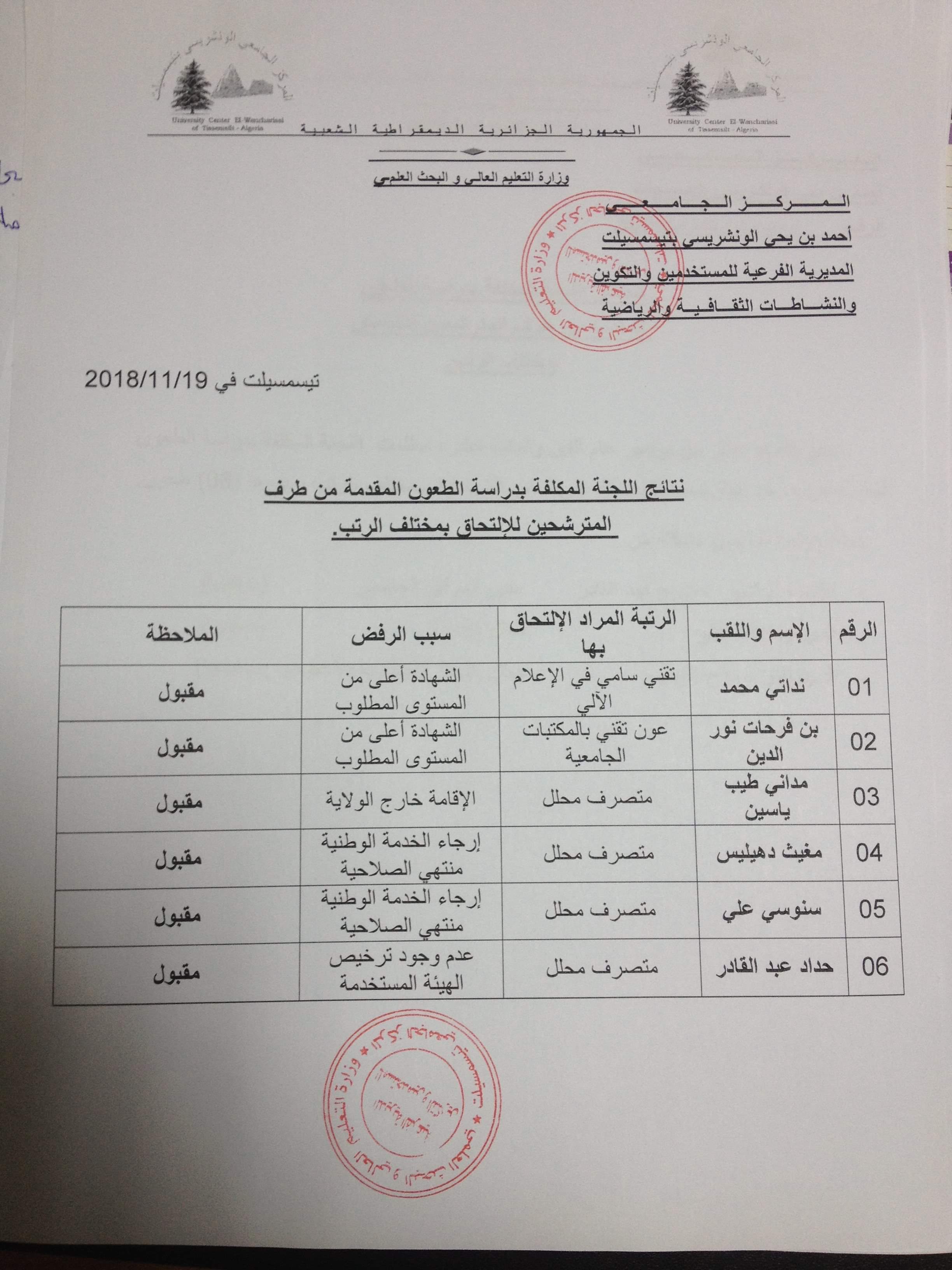 نتائج ما بعد الطعون للمترشحين لمسابقة التوظيف @مسابقات التوظيف بواسطة admin في نوفمبر 19, 2018 603 شارك 603 شارك FacebookTwitterGoogle+ReddItWhatsAppPinterestالبريد الإلكتروني