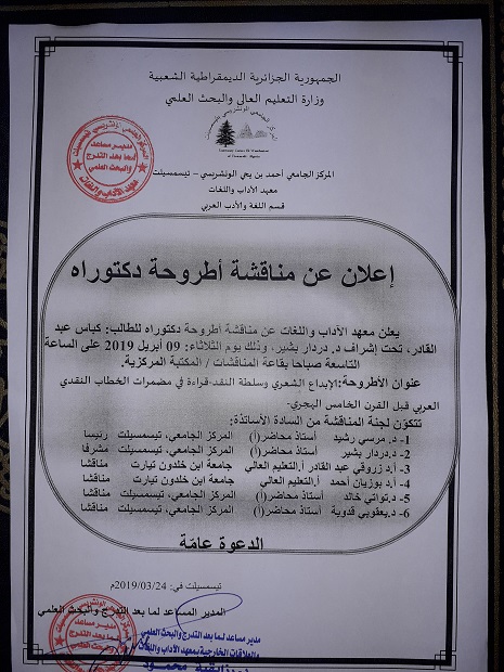 اعلان عن مناقشة اطروحة دكتوراه إعلانات أخرى بواسطة admin آخر تحديث يناير 6, 2023 884 شارك 884 شارك FacebookTwitterGoogle+ReddItWhatsAppPinterestالبريد الإلكتروني