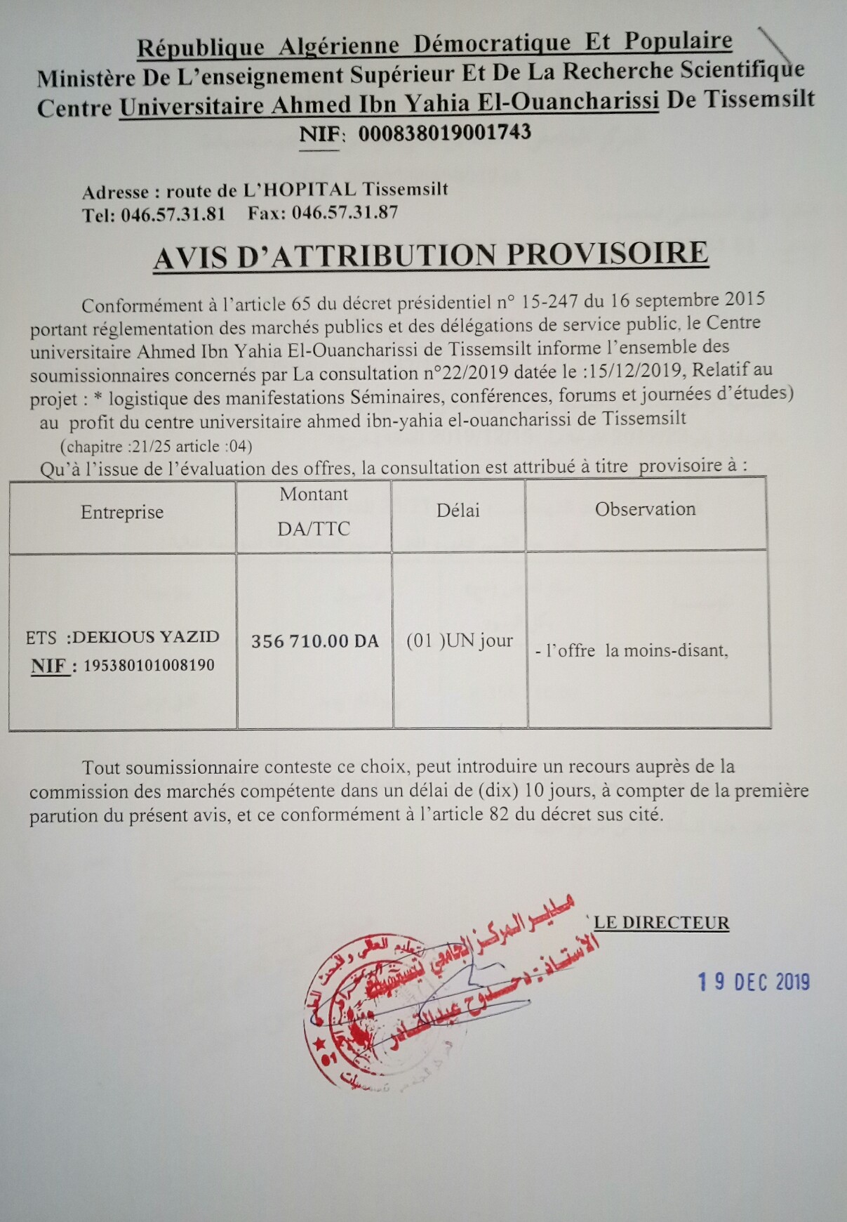 Avis d'attribution provisoire concernés par la consultation n 22/2019 @إعلان عن مناقصات بواسطة admin آخر تحديث يناير 6, 2023 944 شارك 944 شارك FacebookTwitterGoogle+ReddItWhatsAppPinterestالبريد الإلكتروني
