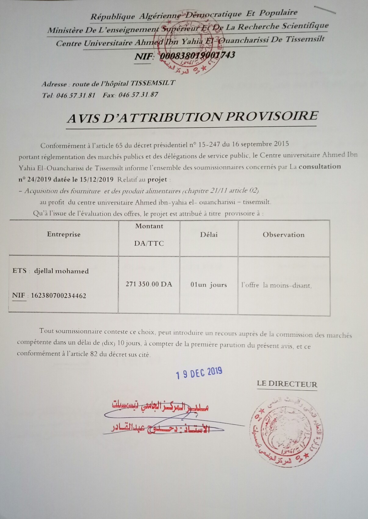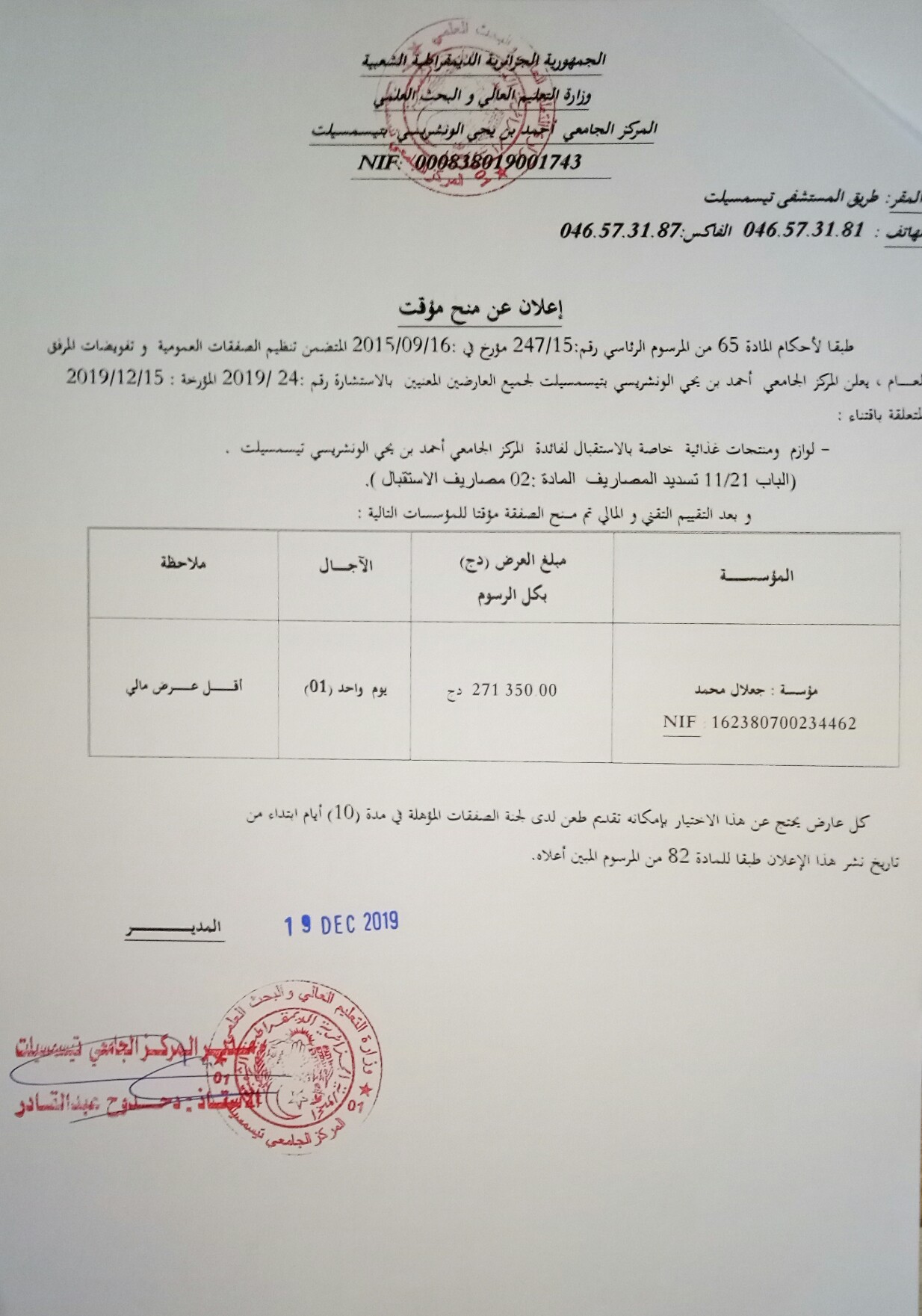 Avis d'attribution provisoire concernés par la consultation n 24/2019 @إعلان عن مناقصات بواسطة admin آخر تحديث يناير 6, 2023 617 شارك 617 شارك FacebookTwitterGoogle+ReddItWhatsAppPinterestالبريد الإلكتروني
