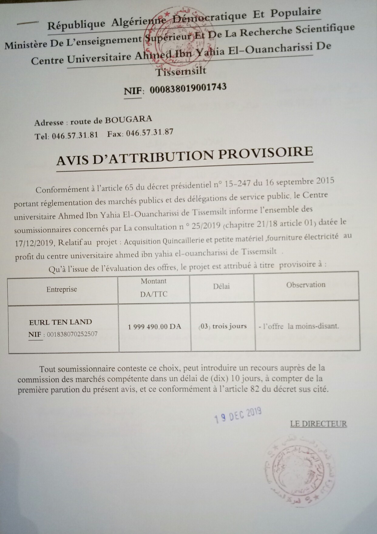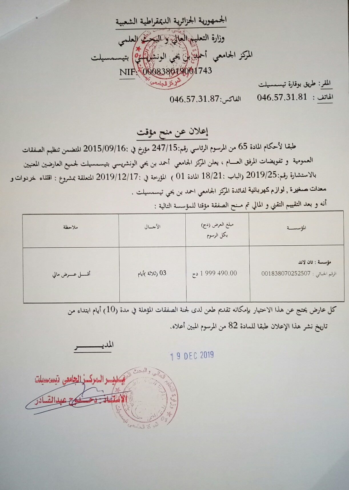 Avis d'attribution provisoire concernés par la consultation n 25/2019 @إعلان عن مناقصات بواسطة admin آخر تحديث يناير 6, 2023 626 شارك 626 شارك FacebookTwitterGoogle+ReddItWhatsAppPinterestالبريد الإلكتروني