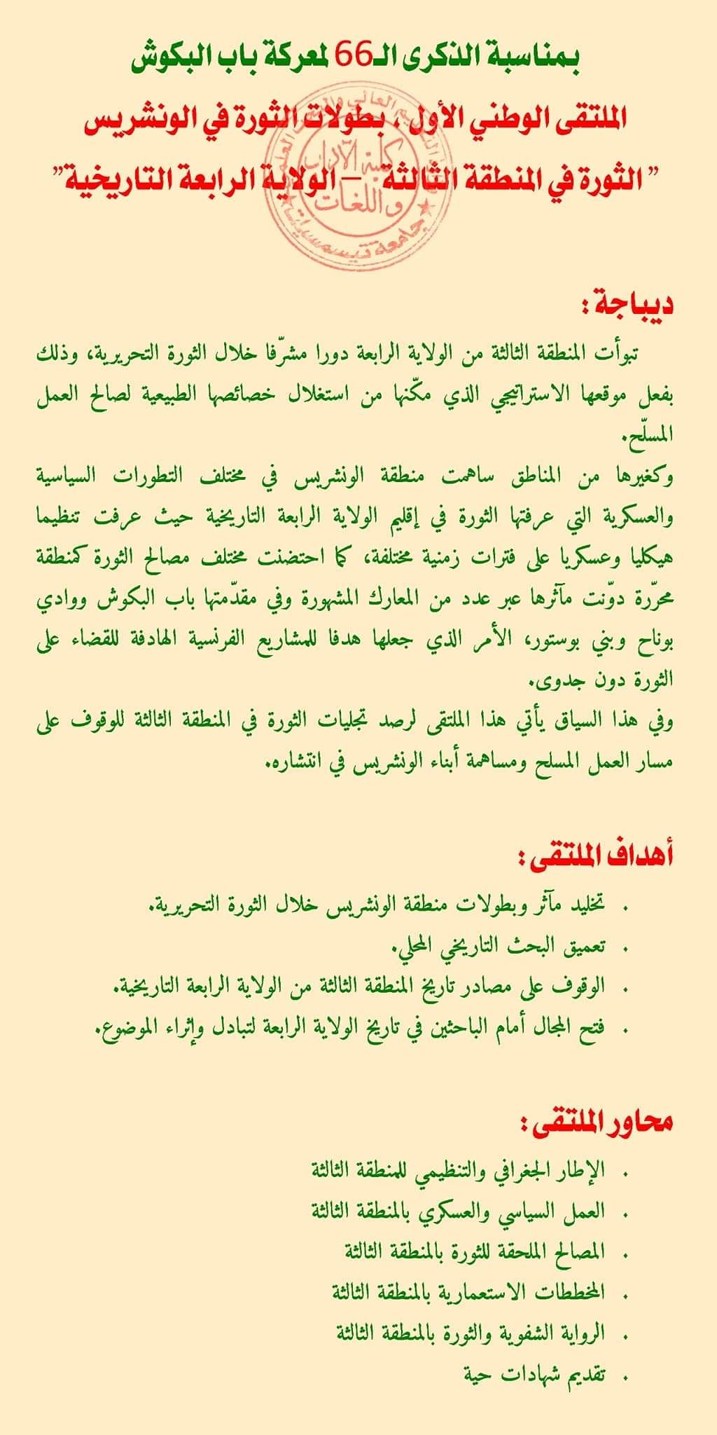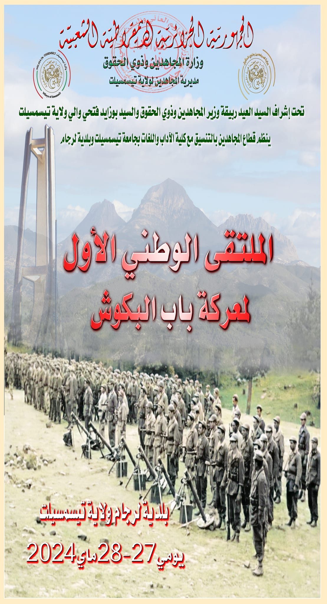 الملتقى الوطني الأول لمعركة باب البكوش @التظاهرات العلمية و الثقافية@منح و جوائز بواسطة admin faculté ll آخر تحديث مارس 16, 2024 616 شارك 616 شارك FacebookTwitterGoogle+ReddItWhatsAppPinterestالبريد الإلكتروني