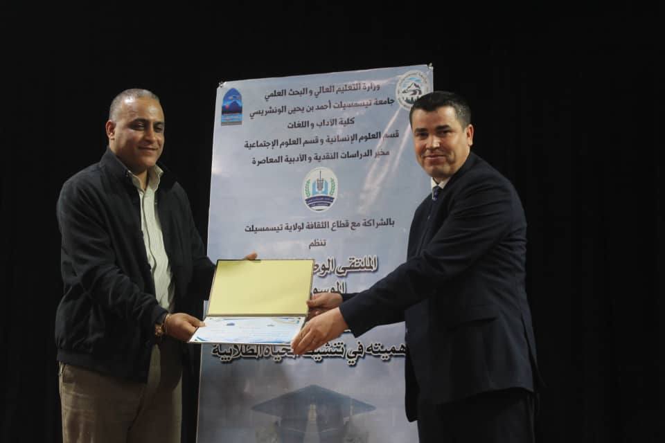 ليعلن بعد ذلك عميد كلية الآداب واللغات اختتام الملتقى نيابة عن السيد مدير الجامعة، الذي تعذر حضوره لانشغاله بمهام أخرى، مُشيداً بنجاح هذه التظاهرة العلمية والثقافية، ومؤكداً على ضرورة استمرار مثل هذه المبادرات التي تجمع بين الفكر والإبداع.